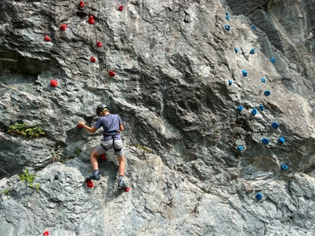 Die Routen sind speziell für Anfänger und Familien wie auch für Gruppen konzipiert. Eine natürliche Felswand wurde mit künstlichen Klettergriffen eingerichtet, so dass sowohl Kletterneulinge wie auch etwas Erfahrene ihr Potenzial ausleben können. Nebst den farbigen Griffen kann man auch versuchen nur an den narürlichen Felsstrukturen die Wand hochzusteigen.