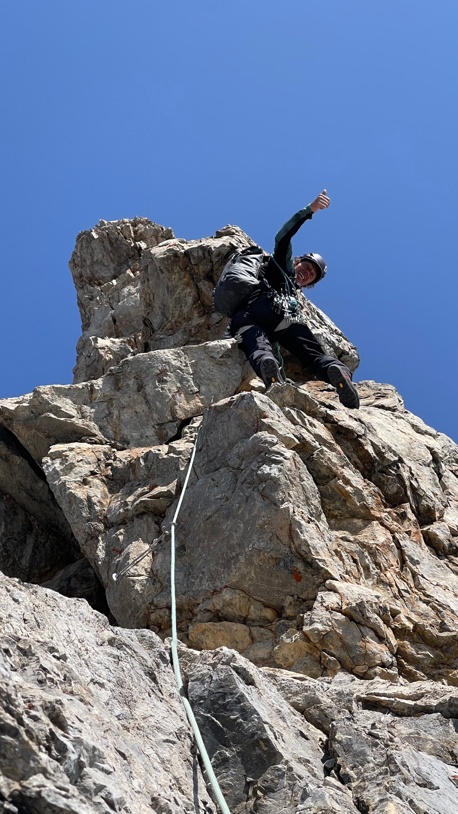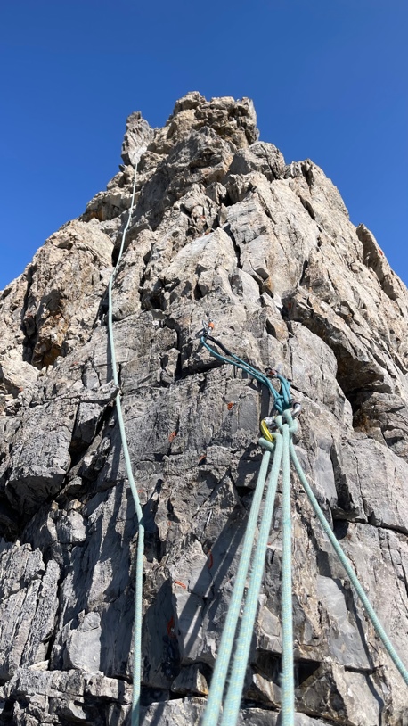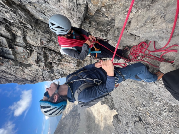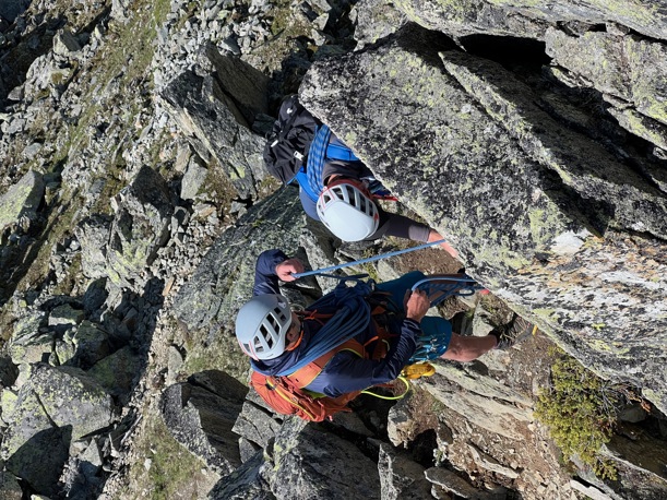 Du lernst, selbstständig Mehrseillängenrouten in Zweierseilschaft zu klettern und den Zu- und Abstieg in alpinem Gelände (evtl. mit Steigeisen) , kurze Abseilmanöver