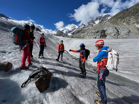2. Tag: Wir nehmen die Bahn zur Diavolezza. Oben angekommen begeben wir uns zum Gletscher. Hier üben wir die Firn-Techniken, Gehen am kurzen Seil, Mitreissproblematik, Spaltenrettung und vieles mehr. Abstieg und Heimreise.