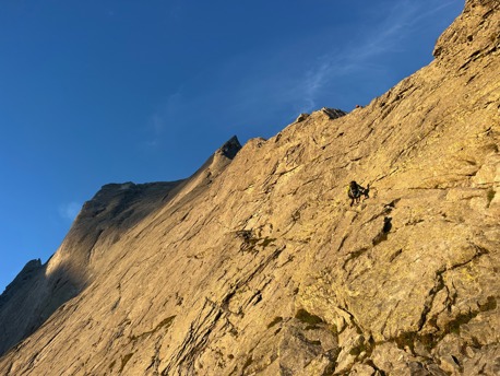 Besteigung des Pizzo Badile über die historische «Via Cassin» und Abstieg über die sog. Rinnenführe über die Südseite zur Capanna Gianetti (CAI) Je nach Wunsch gleich weiter ins Val Masino oder erst am kommenden Tag. Rückfahrt mit Taxi ab Bagni Masino ins Bondascatal.