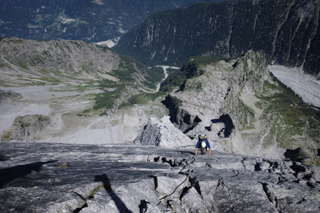 Die Cassin-Route in der NO-Wand ist eine der legendärsten Alpinrouten der Alpen. Der Tiefblick aus der Wand auf den Bondascagletscher und die Mächtigkeit dieser Wand flössen auch routinierten Kletterern gehörig Respekt ein. Jährlich versuchen Dutzende von Seilschaften eine Wiederholung an dieser Tour, bei der es kein Luxus ist, sich einen Bergführer zu buchen!