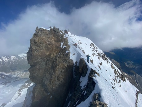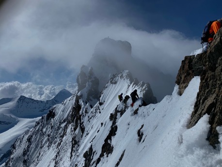 Der Biancograt ist ein großer Traum vieler Bergsteiger. Der Firngrat wird auch die "Himmelsleiter" genannt, so einmalig zieht er sich hinauf zum Piz Bianco. Beeili Dich, den auch diese Firnluppe schmilzt mit der Kilmaerwährmung!