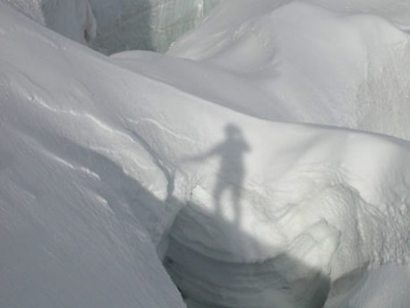 Montag: Treffpunkt am Morgen am Bahnhof Morteratsch. Aufstieg zur Bovalhütte über den Morteratschgletscher verbunden mit Eisausbildung.