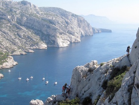 Les Goudes, Sormiou, Morgioux, Sugiton, En Vau sind nur einige der Namen der Calanques. Diese wunderschönen Felsrippen bieten nicht nur ganz tolle Klettermöglichkeiten, sondern laden auch zum Baden im glasklaren Wasser der Buchten ein. Die Ambiance an der Côte d' Azur ist einmalig! Der Baguette zum z'Morge sowie der Pastis nachdem Klettern darf nicht fehlen.