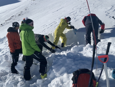 Hier geht es um das Kennenlernen der elementaren Sicherhitsmassnahmen, beherrschen sämtlicher Sicherheitsausrüstung, die Grundregeln beim fahren im Gelände wie auch der Rettung und Bergung von Verschütteten.