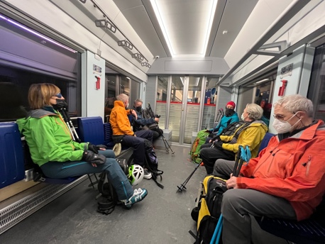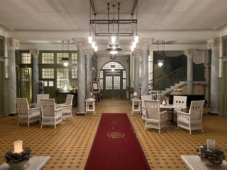 Wir wohnen im historik Hotel Kurhaus. Wie zur "Belle Epoque" Zeiten fühlen wir uns in den grossen und pompösen Säle. Die neue Wellness Anlage bietet wunderbare Räume zum Entspannen und Erholen, nach den Skitouren. Auch kulinarisch lassen wir uns verwähnen und geniessen die schöne Ambiance in der Bar und Foyer.