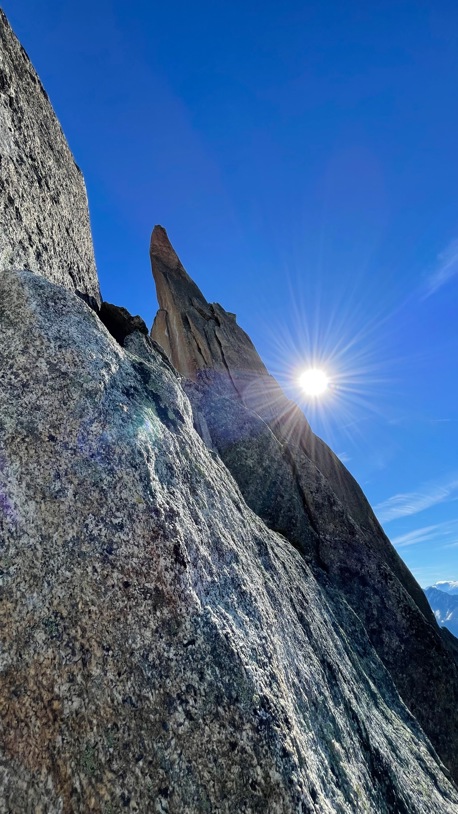 The south ridge is also long and rightly so, both tours are among the most beautiful granite climbs in the Alps. The east or hut ridges are best suited for less strong climbers. As you can see, a weekend is hardly enough to climb all the beautiful tours here. The Nepalese hut assistant Nima looks after us these days.